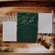 This romantic emerald green and gold foil details card is perfect for a simple wedding. The modern classic design features fancy swirls and whimsical flourishes with gorgeous elegant hand lettered typography in luxurious pressed gold foil.