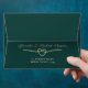 Elegant emerald green wedding envelope featuring a modern gold rope heart and couple's return address in graceful script. A romantic and stylish way to complete your wedding stationery suite.