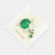Romantic emerald green & white flowers with gold leaves botanical wedding paper napkin.