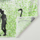 Romantic Enchanting Scenery Love Story - a graphic design created with romantic couple silhouette , flamingo, birds, sun and branches on a background of shining gradient green.