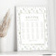 Transform your wedding decor with the timeless charm of our elegant classical romantic seating chart poster. Featuring dusty green eucalyptus leaves and white flowers, this poster adds a touch of sophistication to your spring garden wedding. Explore this exquisite detail for a memorable and organised seating arrangement.