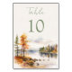 Set the tone for your fall wedding with this romantic Wedding Table Number, featuring a serene lake and mountain scene layered over rustic linen print. Perfect for cosy outdoor wedding, autumn elopements, or destination weddings by the water. Customisable with your names, dates and location - part of our Fall Wedding Collection fo a coordinated stationery suite.