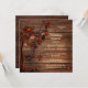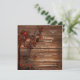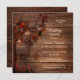 A wedding reception only, post or after wedding invitation featuring an autumn tree with colourful leaves, romantic lanterns and red and orange roses on a rustic wood background.