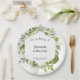 This elegant white paper plate features a stylish frame made of green watercolor field flowers around your custom text. The modern block letters give the classy typography whimsical vibes. Under "Customise this product" you can add and change text lines and images. Perfect not just for weddings, but also for bridal showers, baby showers, birthday parties, graduations, and more.