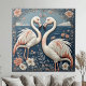 Romantic Flamingo Couple Art Deco Blue Pond Floral Tile