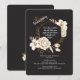 A stunning floral invitation with a black background, white flowers and ferns trimmed in gold, and a hexagon gold frame to hold your party verse. (<a href="https://www.freepik.com/free-photos-vectors/background">Background vector created by rawpixel.com - www.freepik.com</a>). <br/><br/>The card is easy to customise with your wording, font, font colour and choice of six paper types.<br/><br/>Not exactly what you're looking for? All our products can be custom designed to meet your needs at no extra charge.<br/><br/>Simply contact us at askcottonlamb@gmail.com<br/><br/>Coordinating products available:
