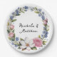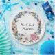 A romantic and elegant floral arrangement illustration, perfect for wedding themes. This design features soft pink roses, delicate magnolias, and pastel blue blossoms surrounded by lush greenery and subtle golden accents. Ideal for wedding invitations, save-the-date cards, signage, or decor, this artwork adds a touch of timeless beauty and charm to any celebration.