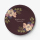 Romantic Floral Burgundy Wedding Paper Plate