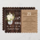 Rustic, romantic and elegant design featuring a combination of burlap and old barn as background, watercolour ivory flowers in a vase, gorgeous typography I DO BBQ with a ring replacing letter O. For more, please, visit my I Do BBQ Chalkboard/Barn and Gingham Collection.