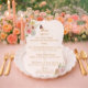 Romantic floral die cut wedding menu card for garden weddings, featuring a soft, whimsical, and elevated aesthetic inspired by cottagecore and fine art botanical design—perfect for the romantic, detail-focused bride. The unique scalloped shape adds a luxurious touch. Style with layered place settings, silk ribbons, and soft pastel florals.