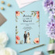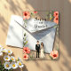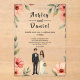 This elegant watercolor floral wedding acrylic invitation is perfect for a modern wedding. The romantic design features a sleek watercolor floral frame with a bride and groom illustration and black calligraphy on a white background.