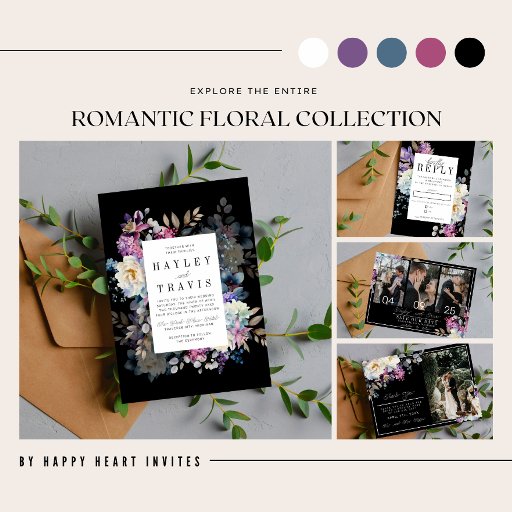 This save the date perfectly coordinates with the Romantic Floral collection.