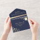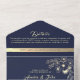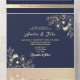 Romantic Floral Navy and Gold Wedding All In One Invitation