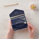Celebrate your special day with this vintage elegant classic gold and navy blue all-in-one wedding invitation. Featuring elegant gold floral accents and a romantic navy blue background, this design is perfect for formal, classic, or evening weddings. Customise with your names, date, and wedding details for a personalised touch.