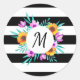 Beautiful stickers with floral watercolor wreath on black & white striped background. Customise the monogram by choosing from many wonderful fonts.