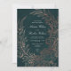 *this is not printed in real foil please note* Romantic Flower Wreath Copper Wedding Invitation for a beautiful elegant formal wedding. Hand drawn original illustrations. Stylish Classic formal wedding. Fake Rose Gold and emerald deep green colours.