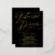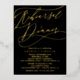 This romantic gold foil and black rehearsal dinner insert card is perfect for a simple wedding rehearsal. The modern classic design features fancy swirls and whimsical flourishes with gorgeous elegant hand lettered gold foil pressed typography on a black background.