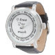 Bought last minute for hubbys 65th birthday. Arrived in NZ by express on the day. Loves it and so does everyone he’s shown it to. Lovely watch and strap and words small but clear. Thank you 😍. Great. Small but clear.