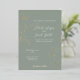 Make a luxurious first impression with this Romantic Forest Foil Wedding Invitation, featuring a soft sage green background adorned with an elegant gold foil butterfly and delicate leaf accents. The shimmering foil detailing adds a touch of sophistication, making this the perfect invitation for boho, woodland, rustic, and enchanted forest-themed weddings. Designed for couples who love nature-inspired elegance, this invitation blends earthy charm with timeless refinement, setting the tone for a truly magical celebration.