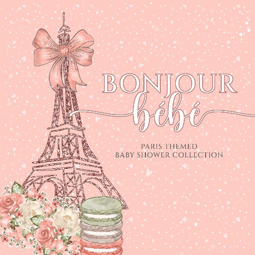 Add a touch of elegance to your celebration with these romantic French baby shower favour bags. This elegant design features a delicate illustration of the Eiffel Tower adorned with a blush pink bow, surrounded by soft florals and pastel-coloured macarons.
