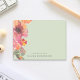 Stylish watercolor bouquet in shades of orange, pink and green, with a light sage green background. The customisable From the desk of and your name template are an easy way to add a personal touch to your post-it notepad.