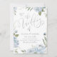 Modern calligraphy wedding script surrounded by watercolor floral in dusty blue and sage green, elegant and romantic, great for modern wedding, romantic wedding, and botanical garden wedding in spring and summer.
