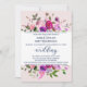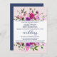 This romantic garden wedding invitation card is perfect for an elegant wedding. The design features a dainty floral watercolor bouquet on a pale pink background with navy blue text. You can change the colour of the background to match your wedding colours by clicking the "customise" button.
