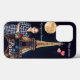 Romantic Girl Eiffel Tower Dream iPhone 13 Pro Cases is the most beautiful tower in Paris and the beautiful girl holding a beautiful rose in her hand shows a strong romantic dream with romantic words and the tower is very beautiful with lights. Black background and hearts look.