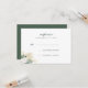 A pretty wedding response/rsvp card, featuring a small floral watercolor arrangement of cream, white and green roses and leaves, with a sprinkling of faux glitter. The backing is in solid dark sage green. Matching items in this design available.