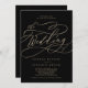 This romantic gold and black qr code all in one wedding invitation is perfect for a simple wedding. The modern classic design features fancy swirls and whimsical flourishes with gorgeous elegant hand lettered faux champagne gold foil typography. Save paper by including a QR code for your guest to view details, RSVP, or both.
