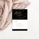 This romantic gold calligraphy black song request RSVP card is perfect for a simple wedding. The modern classic design features fancy swirls and whimsical flourishes with gorgeous elegant hand lettered faux champagne gold foil typography. Build your wedding guest list and your dance floor song list all at once! This wedding response card conveniently asks guests if they will be able to attend your wedding, and also what song will get them to dance.