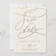 This romantic gold calligraphy ivory save the date card is perfect for a simple wedding. The modern classic design features fancy swirls and whimsical flourishes with gorgeous elegant hand lettered faux champagne gold foil typography.
