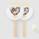 Elegant romantic gold metallic look confetti on white Hand Fan. Text and picture ready to be personalised.