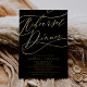 This romantic gold foil black rehearsal dinner foil invitation is perfect for a simple wedding rehearsal. The modern classic design features fancy swirls and whimsical flourishes with gorgeous elegant hand lettered gold foil pressed typography on a black background.