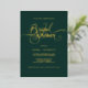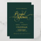 Elevate your bridal shower with this sophisticated invitation. Featuring an elegant dark emerald green background, it showcases luxurious hand-lettered gold foil typography accented with graceful swirls and whimsical flourishes, creating a timeless and romantic design.