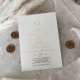 This romantic gold foil ivory monogram wedding invitation is perfect for a simple wedding. The modern classic design features fancy swirls and whimsical flourishes with gorgeous elegant hand lettered gold foil stamped typography on an ivory cream background.