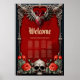 Romantic Gothic icon: heart, rose, skull. An ornate silver frame that stands out against a deep red background. The frame is richly decorated with detailed floral and ornate patterns, giving it an elegant and complex structure. A winged heart adorned with a bright red jewel sits in the upper centre of the frame—a symbol of love and passion that also exudes a mystical aura. A silver skull surrounded by vibrant red roses and green leaves. These elements combine the dark Gothic aesthetic with romantic delicacy, lending the overall image a dramatic yet sensual mood. A harmonious balance between Gothic drama and romantic elegance.