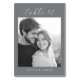 This wedding table card features a monochromatic photograph of two individuals, creating an intimate and warm atmosphere. The grayscale color palette enhances the classic and elegant feel, while the cursive script at the top adds a personal touch with "table 12." Below the photo, bold sans-serif typography displays names prominently, ensuring clarity and style. The minimalistic design focuses on the subjects, making it perfect for adding a romantic and sophisticated element to your event decor.
