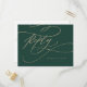 This romantic green calligraphy menu choice RSVP postcard is perfect for a simple wedding. The modern classic design features fancy swirls and whimsical flourishes with gorgeous elegant hand lettered faux champagne gold foil typography. This wedding response postcard conveniently asks guests what meal they would like at your reception.