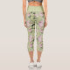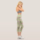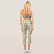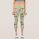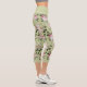 Romantic green floral pattern roses capri leggings