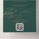 This romantic green monogram QR code wedding all in one invitation is perfect for a simple wedding. The modern classic design features fancy swirls and whimsical flourishes with gorgeous elegant hand lettered faux champagne gold foil typography. Hand write your guest addresses on the back of the folded invitation, or purchase coordinating guest address label stickers (sold separately).