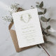Romantic Green White Floral Monogram Crest Wedding Invitation