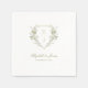 Elegant wedding napkins, embellished with a stunning green and white watercolor floral monogram crest and classic calligraphy.