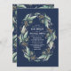 Romantic Greenery Wreath Navy Blue Fall Wedding Invitation