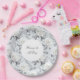 Romantic Grey Silver White Rose Floral Wedding Paper Plate