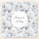 Romantic Grey Silver White Rose Floral Wedding Square Paper Coaster