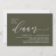 Mark the beginning of your forever with elegance using our romantic contemporary rustic olive green theme wedding elopement happily ever after lunch, brunch, reception dinner party celebration invitation card, "Happily ever after dinner". Perfect for couples extending their joyous occasion, this invitation exudes sophistication with a hint of playfulness, setting the stage for a memorable event. Adorned with a timeless modern script design theme, it adds a touch of refined charm to your festivities. Crafted by TeeshaDerrick, this invitation promises to beautifully capture your love story.