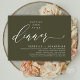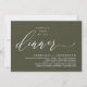 Mark the beginning of your forever with elegance using our romantic contemporary rustic olive green theme wedding elopement happily ever after lunch, brunch, reception dinner party celebration invitation card, "Happily ever after dinner". Perfect for couples extending their joyous occasion, this invitation exudes sophistication with a hint of playfulness, setting the stage for a memorable event. Adorned with a timeless modern script design theme, it adds a touch of refined charm to your festivities. Crafted by TeeshaDerrick, this invitation promises to beautifully capture your love story.