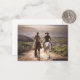 Nothing more romantic than riding off into the sunset with the one you love. This gorgeous design shows a pair on horseback holding hands as they do just that. Oil painting style of artwork. Matching products available.