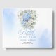 Celebrate the bride-to-be with this elegant bridal shower guest book featuring watercolor blue hydrangeas, soft eucalyptus greenery, and delicate gold accents. Designed for a romantic and sophisticated celebration, it provides a beautiful space for guests to share wishes and memories. A timeless keepsake that perfectly complements classic, boho, or modern bridal shower themes.